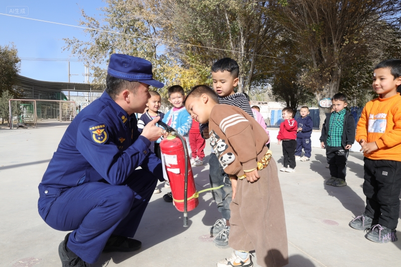 為筑牢校園消防安全防線,增強師幼應急避險能力,近日,色滿鄉邀請喀什市天山路消防救援站消防員走進轄區中心幼兒園,開展消防知識宣講活動。
