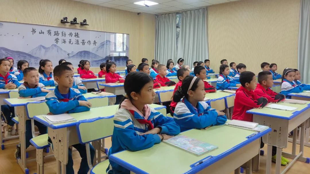 夏馬勒巴格鎮中心小學四年級9班同學們認真聽老師講解《手拉手 心連心》主題課。董曉 攝