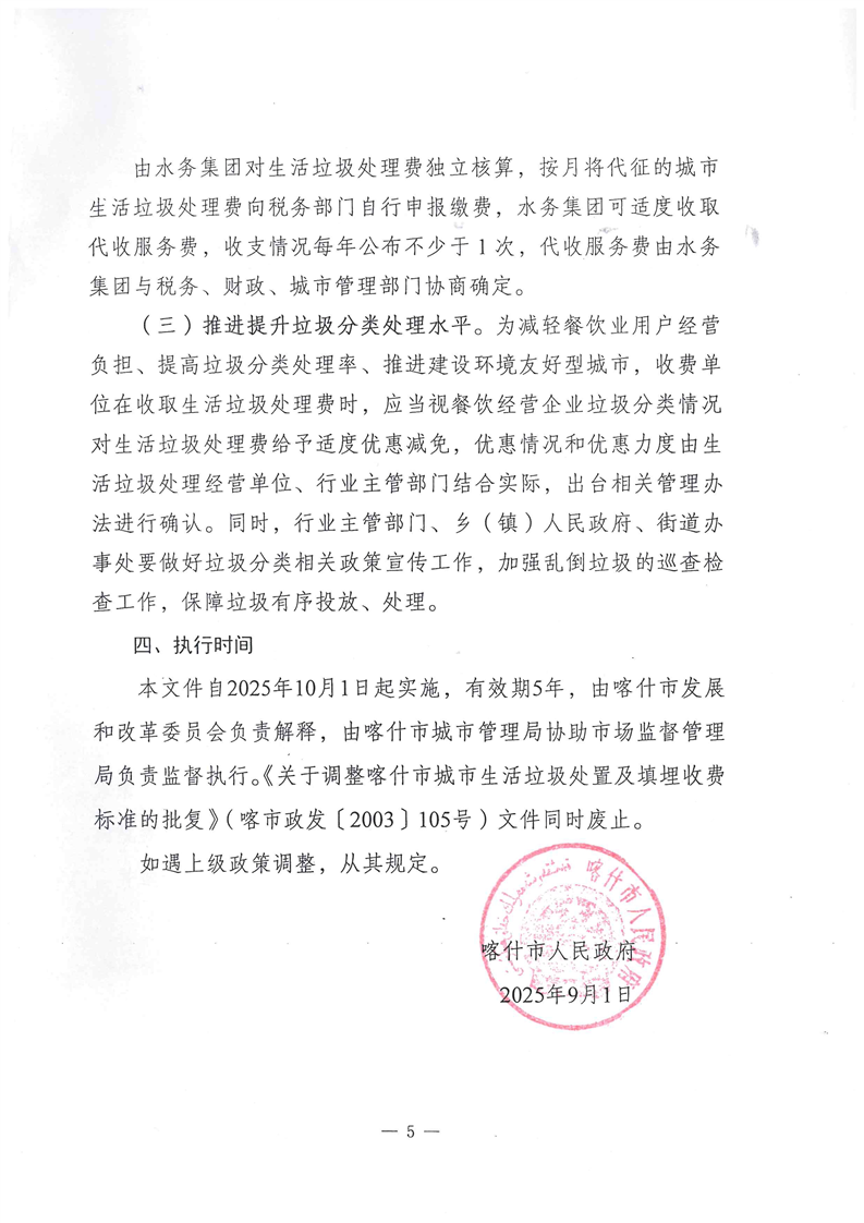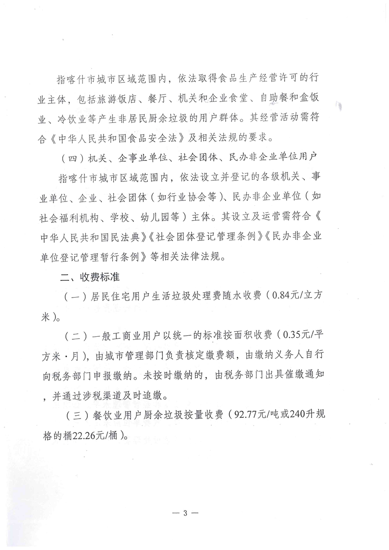內容概述 關于調整喀什市城市生活垃圾處理收費標準的通知