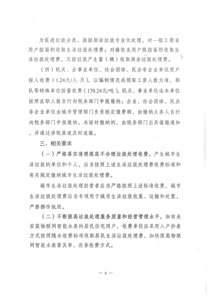 關于調整喀什市城市生活垃圾處理收費標準的通知