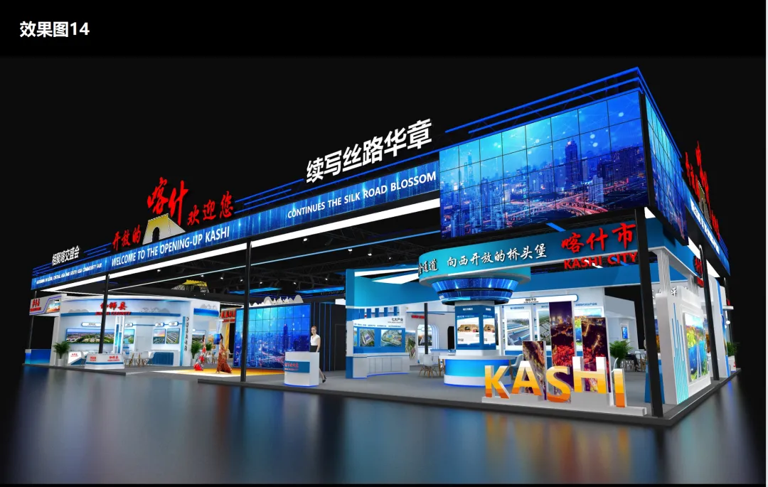 喀什地區(qū)十二縣市特裝展位效果圖。喀什市商務(wù)局供圖