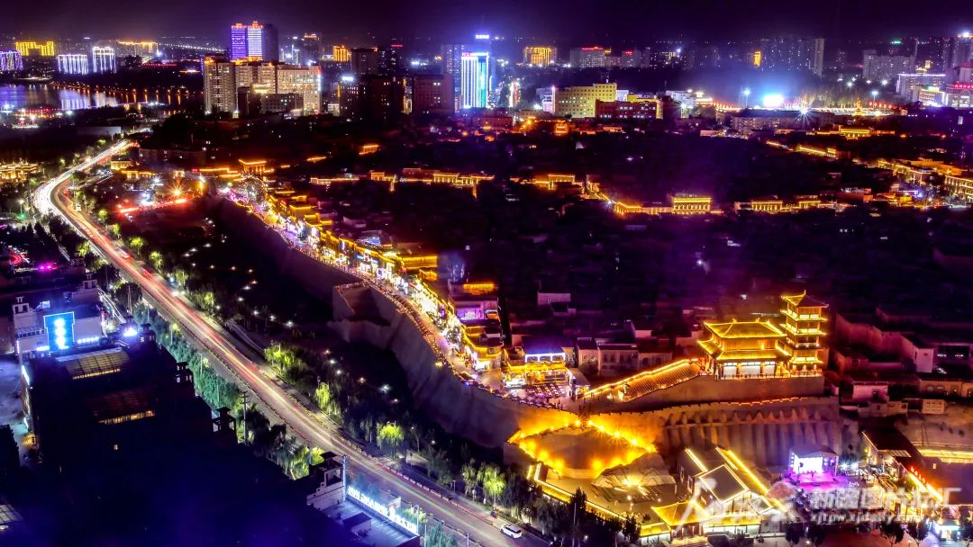 俯瞰喀什古城景區夜景(8月23日攝)
