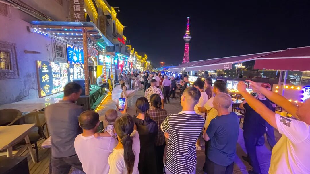 當(dāng)夜色漸深,喀什古城景區(qū)印象一條街化身為音樂的海洋,民謠、流行、搖滾等各類音樂此起彼伏,熱鬧的人流在音樂中穿梭。各商家更是巧花心思,將美食、燒烤和特色飲品結(jié)合起來,讓游客充分享受夜間浪漫。