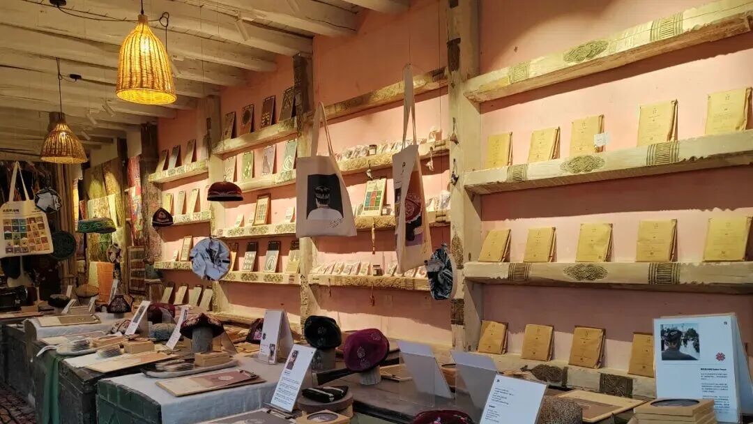 喀什古城景區(qū)文創(chuàng)店店員小奇說:“最受歡迎的文創(chuàng)產(chǎn)品是‘朵帕’系列,它以新疆傳統(tǒng)花帽為設(shè)計(jì)靈感。茶歇時(shí)提供的花茶也源自本地,就連展覽中也陳列了許多南疆手工藝品——我們希望通過這些方式,傳遞南疆文化,讓每位來喀什的朋友,都能更深入地了解這片土地。”