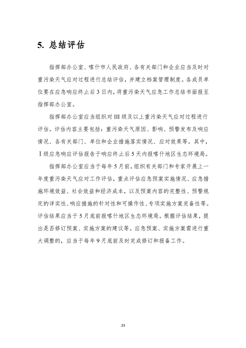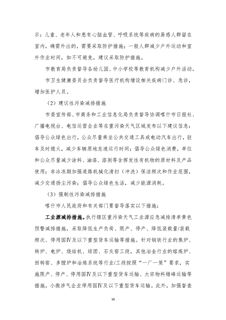 內容概述 為提高全市重污染天氣預防、預警和應對能力,有效控制、減少或消除重污染天氣條件下的風險和危害,為保障人民群眾身體健康和社會穩定,結合喀什市實際,制定本預案。